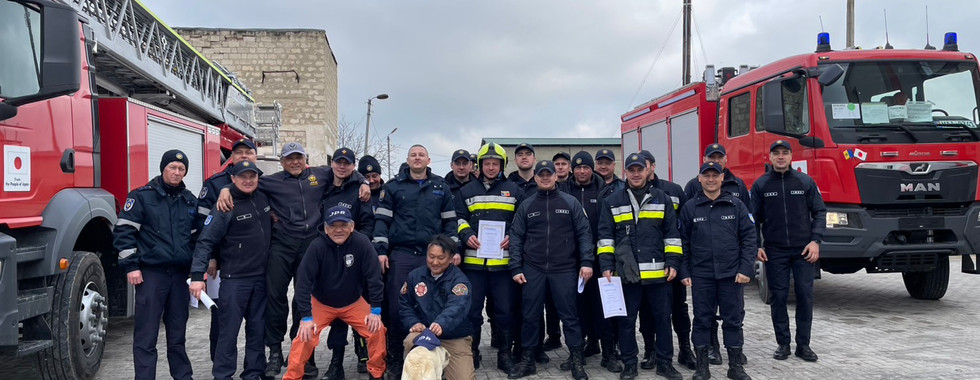 週末には国会議事堂前広場で今回の訓練対象であるはしご車やポンプ車の引き渡し式典が催されました。これはモルドバ共和国大統領をはじめ山田駐モルドバ特命全権大使なども参加されて国の一大イベントです。光栄なことにJPRメンバーも参加させていただきました。