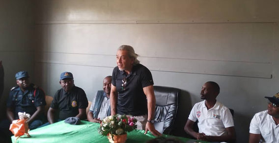 早朝にルサカから150キロ移動し、国立消防学校(Zambia National Fire Service Training School)を視察しました。急遽、学生たちの訓練式では検査官の役を担わせて頂きました。その後、アカデミーの目的や消防サービスのミッションについて説明を受けました。